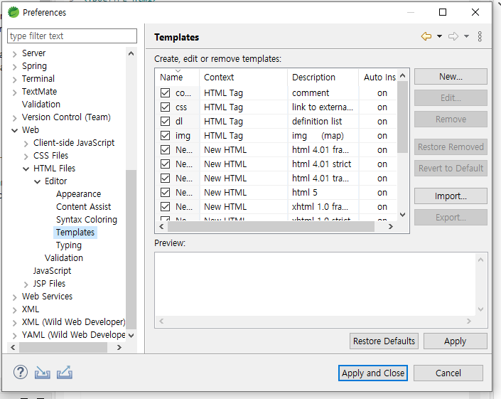 templates: springBoot에서 권장하는 파일