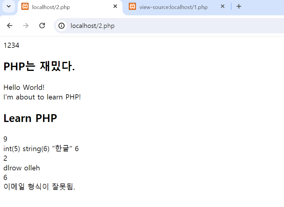 echo "<h2>PHP는 재밌다.</h2>";
