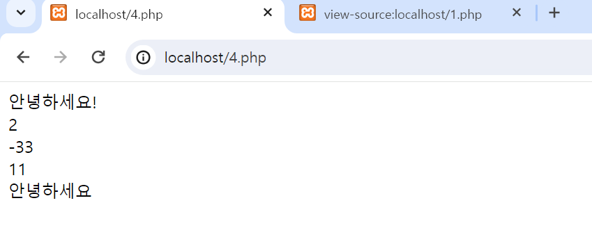 echo "a2와 b2는 다르다"."<br>";